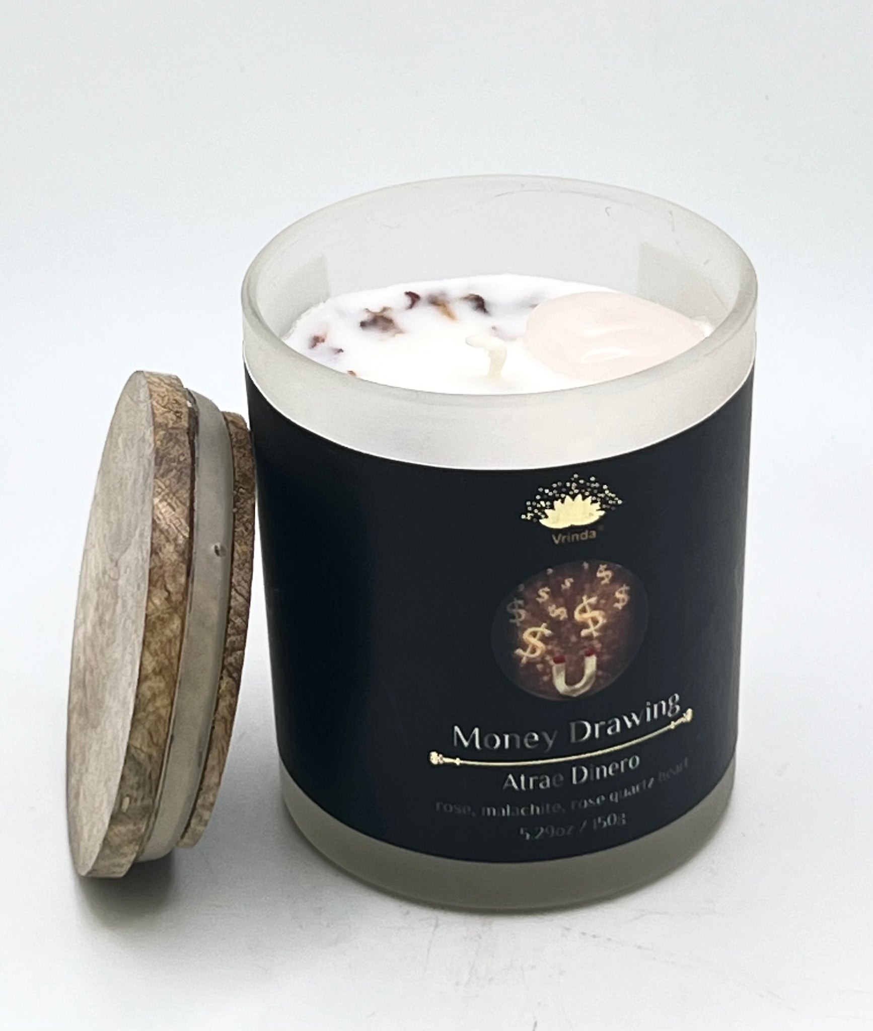 Elevate your space with the Money Drawing Scented Glass Candle, a luxurious blend of intention and artistry. Crafted from a premium soy blend, this candle is infused with essential oils, crystals, and healing herbs to promote abundance, prosperity, and positive energy.