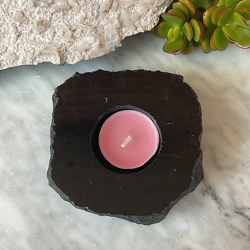 Add grounding energy and natural beauty to your space with this Rough Black Tourmaline T-Light Candle Holder. Known for its protective and cleansing properties, black tourmaline helps shield against negative energy while creating a calming atmosphere when paired with a warm candle glow.